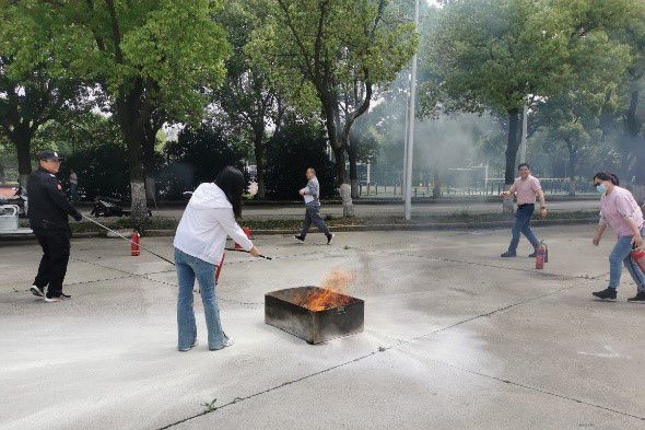 应急疏散演练结束后,为进一步巩固实践效果,汽车与交通学院师生在工业中心B楼一楼集合,进行点评和总结,实验实训室管理人员前往空旷场地进行灭火演练,相关人员现场演示了灭火器使用的操作程序,并预设了火源,让大家亲身体会使用灭火器灭火的感受,使参训人员都能正确掌握灭火器的操作方法。
