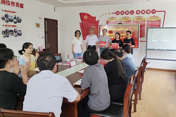 6月21日下午,优秀微课教学作品观摩及颁奖大会在明德楼A-215举行,校党委副书记周桂瑾和基础课部直属党支部全体党员参加大会,会议由支部副书记王兰主持。
