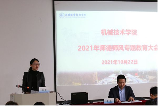 为深入学习贯彻习近平总书记关于教育的重要论述和全国教育大会精神,贯彻落实教育部等七部门《关于加强和改进新时代师德师风建设的意见》及省委教育工委、省教育厅《关于印发全省师德专题教育实施方案的通知》要求,全面系统地加强师德师风建设工作,10月22日下午,机械技术学院在工业中心S207会议室召开师德专题教育大会,分院领导及全体教师参加会议,会议由机械学院党总支副书记张静主持。
