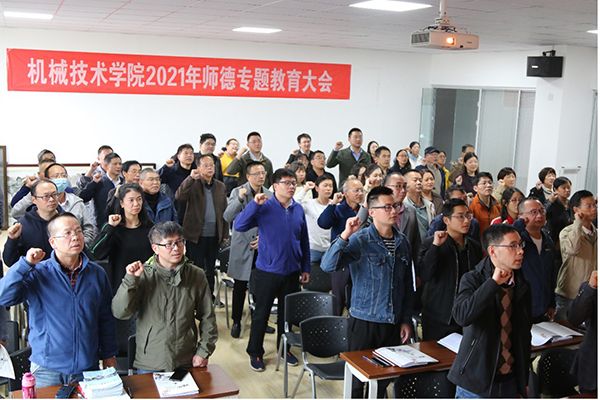 最后,全体教师签订了《机械技术学院教师师德师风承诺书》,并集体宣誓“为人师表,恪守师德,廉洁从教,为祖国培养优秀人才而奋斗终身”。