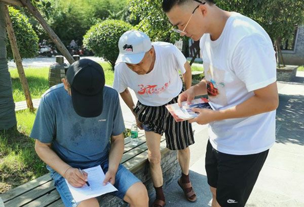 7月22日清晨,团队成员分成两组,往南北两个方向绕着盂城驿街区进行走访调查。第一组在人民公园采访到一位热心老人,他表示十分关注建党100周年这一重大历史时刻,填写了首份“邮票对百年党史传播作用”调查问卷,并在镜头前饱含真情地说:“祝中国共产党生日快乐!”与此同时,第二组在法治公园走访也陈果颇丰。调研发现,受访者以老人居多,对建党建国多有更深的情感和思考,中年人则更关注改革开放后中国历史的重大转折。有受访者惋惜地表示,“文革时候很多古城墙都被拆掉了,今天应该看见更好的驿站文化。”还有一位快80岁的纳凉大爷受访时,从一开始的不说话,到后面大谈国家政策、教育及党史,激昂澎湃地说:“知识才能改变命运,中国是制造业大国,中国制造业需要培养技术型人才,没有搞技术的怎么能叫制造业大国呢?”