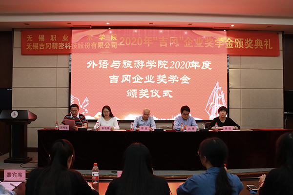 5月11日下午,2020年度完美官方网页版“吉冈”企业奖学金颁奖典礼在我校国际交流中心二楼报告厅隆重举行。无锡吉冈精密科技股份有限公司总经理周延、副校长杨雪琴、学生工作处处长徐悦、外语与旅游学院院长冯臻、吉冈公司行政部负责人、学院相关负责老师及全体获奖同学出席了本次颁奖典礼。颁奖典礼由外语与旅游学院党总支书记郭再泉主持。