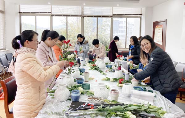 为了庆祝“三八”国际妇女节,丰富女教工的文化生活,提升审美品味,基础课部于3月9日在明德楼A215开展主题为“美丽春光 花香满溢”的插花品香活动。