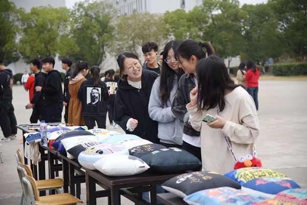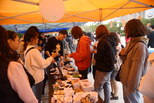 作为分院的文化展示平台,此次创意市集活动分为售卖区和体验区。售卖区中的创意作品由艺术与设计学院在校学生自行设计完成,有自制抱枕、手绘明信片、手绘衬衫、手绘圆扇、相框、灯具、杯垫、布袋、古装饰品、徽章、书夹、自制流沙瓶、陶器等作品近千件,样式繁多且物美价廉,同学们穿梭市集,或驻足欣赏,或啧啧称赞,十分热闹。体验区内,设计了手绘、涂鸦等现场互动环节,受到师生们的欢迎。