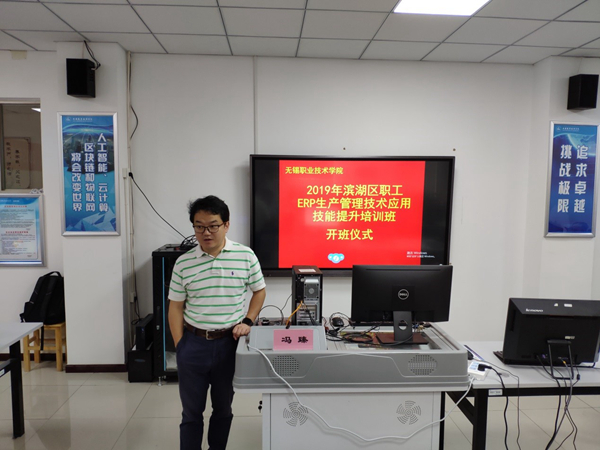 8月4日上午,2019年滨湖区职工ERP生产管理技术应用技能提升培训班在我院明德楼202举行开班仪式,管理学院院长冯臻、副院长郑爱翔、项目管理人员、培训教师,以及来自滨湖区各街道的30多名企业员工参加了开班仪式。
