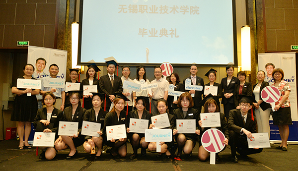 5月16日下午,外语与旅游学院与无锡富力喜来登酒店联合开展的首届“现代学徒制”人才培养项目——“喜来登班”毕业典礼在酒店三楼会议厅隆重举行,17名同学顺利拿到毕业证书。