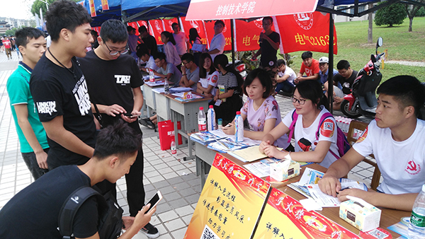 控制技术学院现有学生党员23名。迎新当天,学生党员们全体出动,不仅耐心应对新生和家长的咨询,还主动向他们介绍学校的基本情况,传授新生适应指南。为了更好地服务新生和家长,党员同志们还在服务点设立了饮用水免费供应,并提供纸巾、文具等用品。他们的贴心服务让过往的新生和家长止不住点赞。