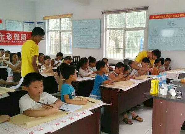 支教期间,志愿者们为留守儿童们开设了语文、数学、英语、美术、音乐、体育、书法、计算机8门课程,陪伴他们度过一个愉快充实的暑假。志愿者们每天坚持行走3公里赶到教学地点上课,用自己的细心、耐心向每个渴望知识的孩子传授知识。为了能够从心灵深处给予留守儿童们更多的关爱,志愿者们还与留守儿童结对,在课余时间家访,让他们淡忘父母不在身边的孤单,好好学习,快乐心灵。