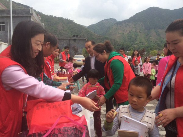 山阳县色河铺镇峪口小学地处陕西贫困山区,该校大多数孩子的父母都外出打工,学生多为“留守儿童”,学校里缺乏可以供给孩子们阅读的书籍。母亲节之际,财经学院志愿者将募捐、义卖款2380元换购成图书,赠送给学校的孩子。“头一回见到这么多书,太开心了!”一位名叫马丹的小姑娘开心地说。该校负责人坦诚地说,目前孩子们最缺的就是课外书籍,这些“及时雨”不仅能拓宽孩子的知识面,也能丰富孩子的课余生活。
