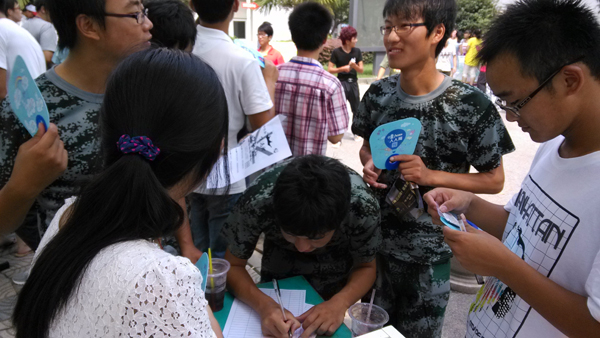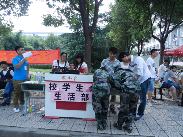 9月14日中午,根据校团委的统一部署,校学生会、社联、红十字协会、青年志愿者协会和大学生艺术团5个校级学生组织及各院系分团委、学生会统一在学生公寓梅园前步行道及篮球场集中招新。