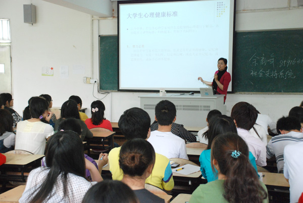 5月15日下午,经管学院在教学大楼302教室举办心理健康讲座,邀请学校心理健康教师余新年为经管学院2010和2011级21个班的心理委员、班级骨干和学生代表百余人作《塑造阳光心理,成就美好人生》的专题讲座,并进行了心理健康辅导的相关培训。