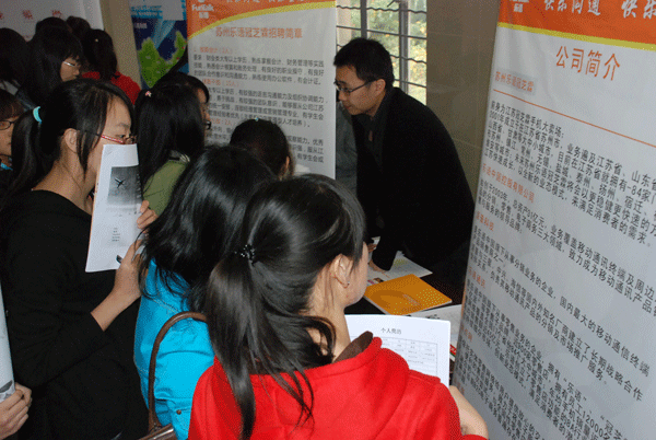 9月份开始,就有相关单位进校进行招聘,为了提高毕业生就业对口率,了解毕业生的就业起薪情况,对参加校园招聘的企业进行筛选,同时采取专场招聘会的方式进行,取得了良好的效果。(经管学院