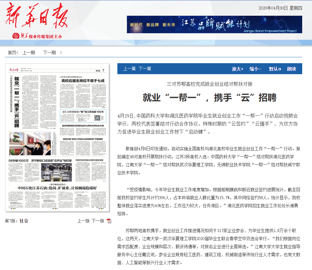 【新华日报】就业“一帮一”,携手“云”招聘