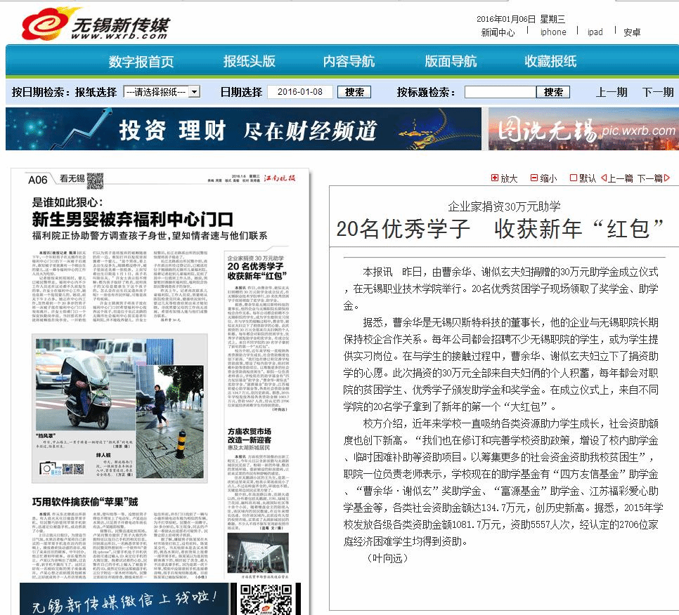 【江南晚报】企业家捐资30万助学 120名优秀学子收获新年“红包”