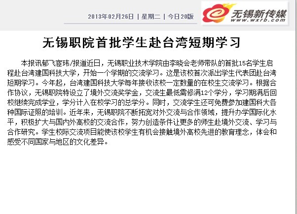 【无锡商报】无锡职院首批学生赴台湾短期学习