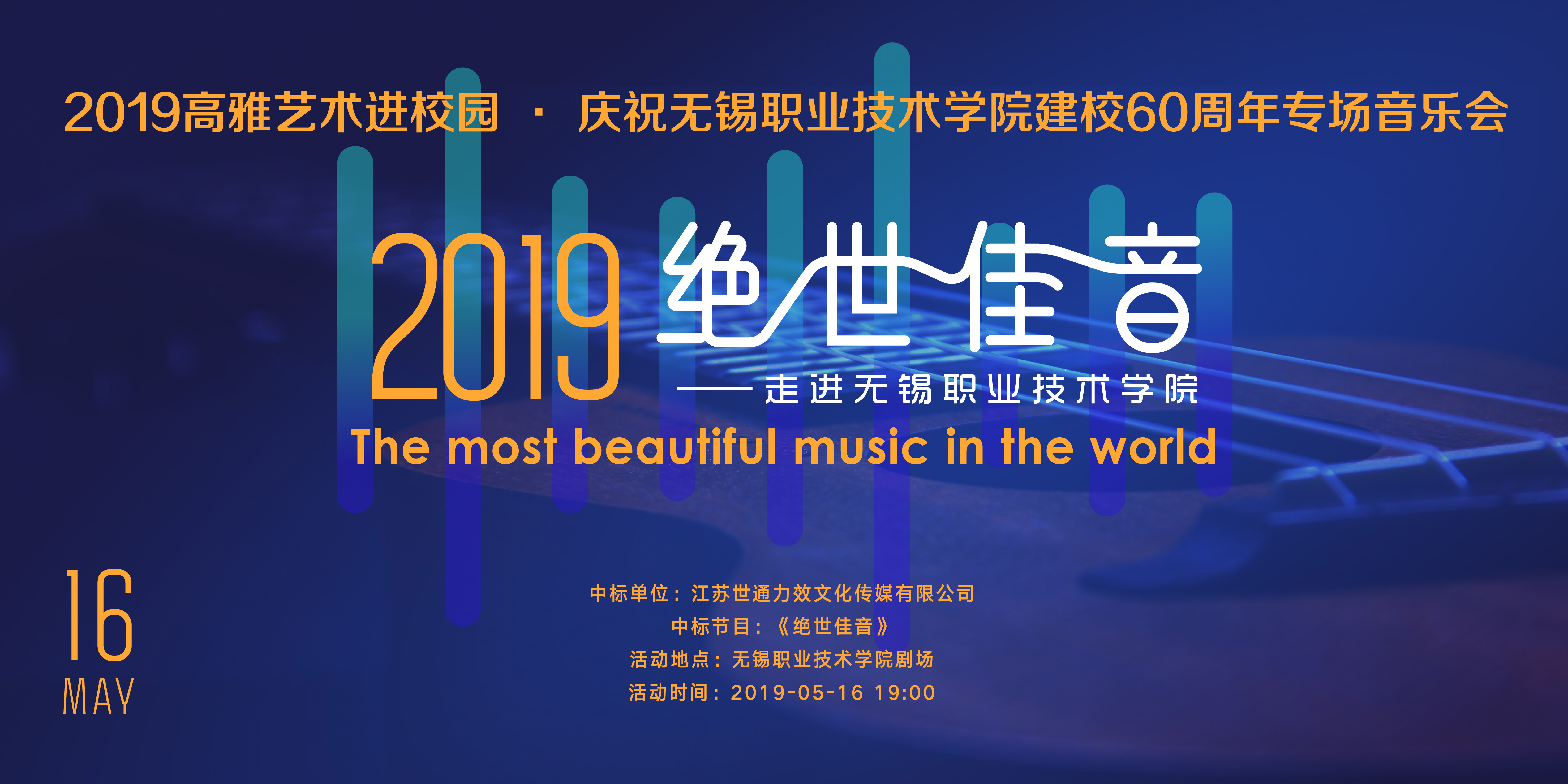 2019年“高雅艺术进校园”· 庆祝完美官方网页版建校60周年专场音乐会将于5月16日(周四)晚19:00在国际交流中心一楼报告厅上演,诚邀广大师生莅临欣赏。