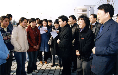 2004年1月7日,无锡市委书记王荣在我院太湖校区与学生代表亲切交流。